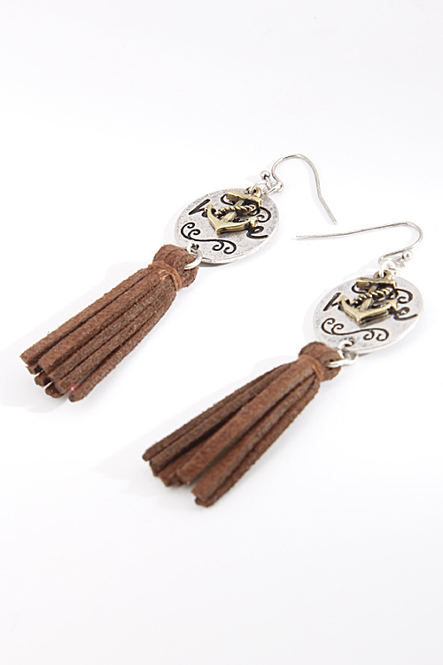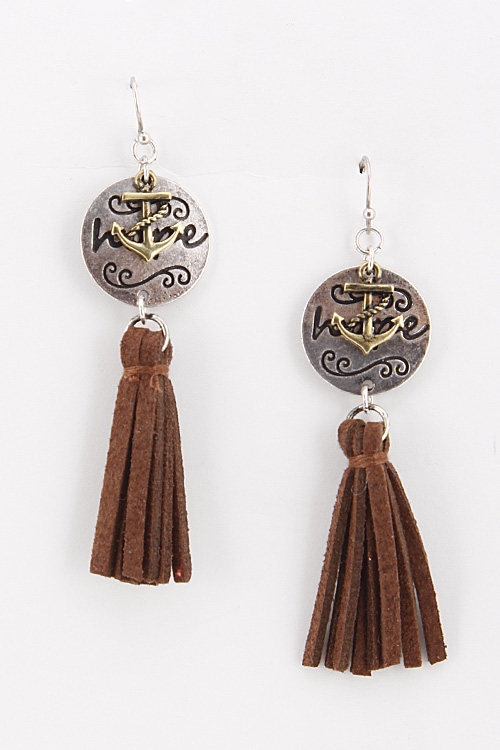 - *Hope Hook Earrings With Anchor And Tassel 6BAH10 *0.5 X 3" approx.