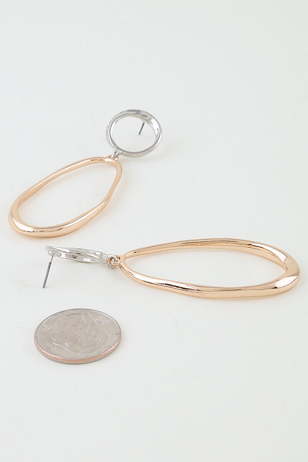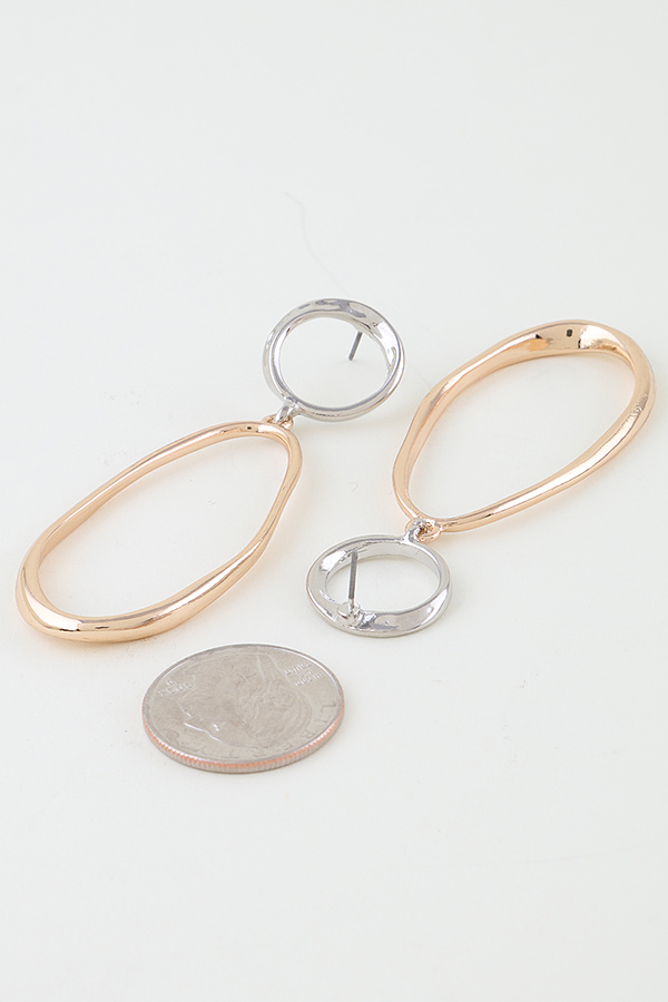 - * These are Two Toned Open Drop Earrings from H&D Accessories. They feature a design with circular top elements and larger, open - drop lower components, creating a layered and stylish silhouette. The two - toned structure adds a unique visual appeal, blending different metal finishes for an eye - catching look.