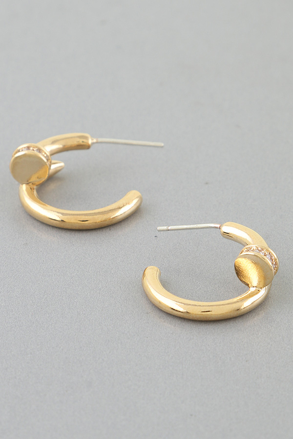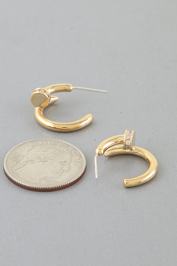 - * These Jeweled Nail Hoop Earrings from H&D Accessories are a stylish blend of modern design and elegance. Each earring features a smooth, hoop - shaped structure with a distinctive nail - like element adorned with small, sparkling jewels. The craftsmanship highlights the fine details, creating a piece that is both chic and eye - catching.