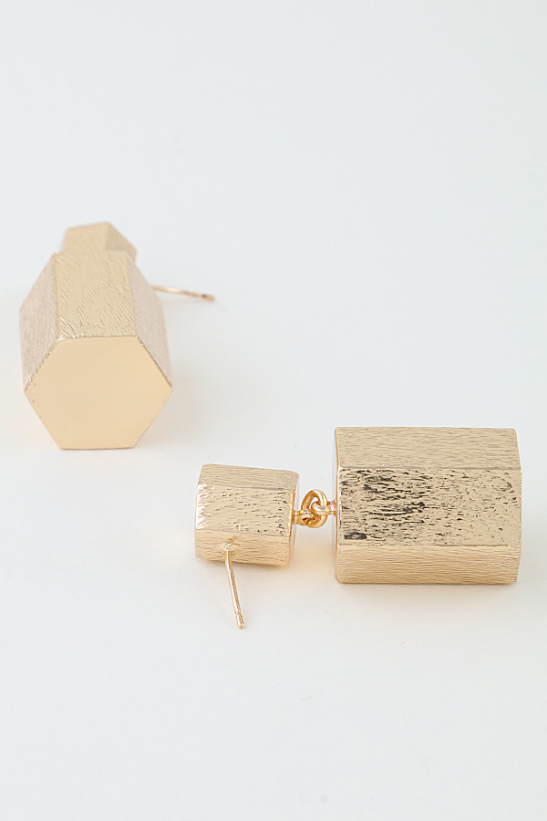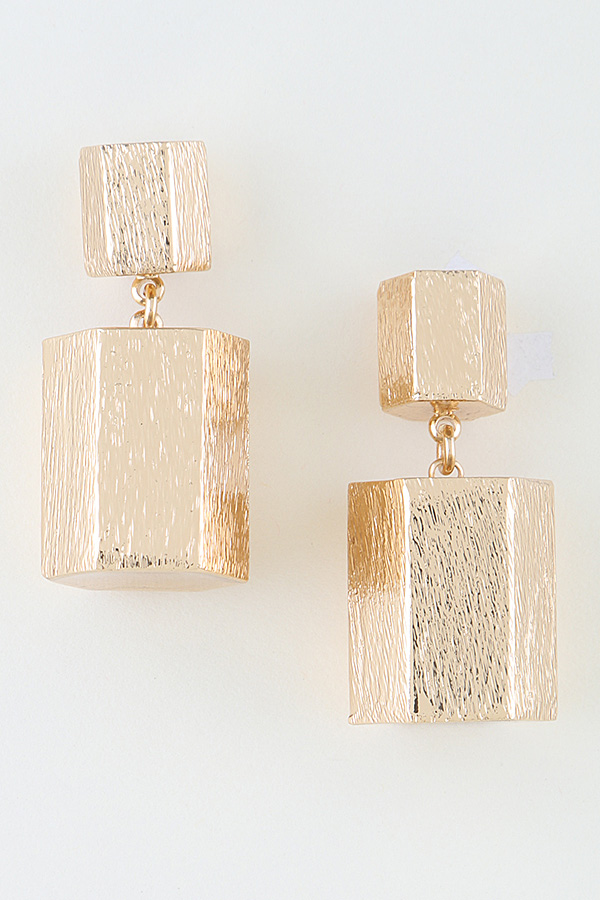 - * This pair features Hammered Hexagon Block Drop Earrings from H&D Accessories, designed with a layered silhouette: each earring consists of two distinct hexagon-shaped blocks linked by delicate metal connectors. The surface of each block is finished with a textured hammered detail, adding subtle dimension and a tactile, artisanal touch to the structured geometric form. The drop style offers a balanced, eye-catching length that complements both casual daily looks (like a simple blouse and jeans) and polished ensemble for evening occasions.