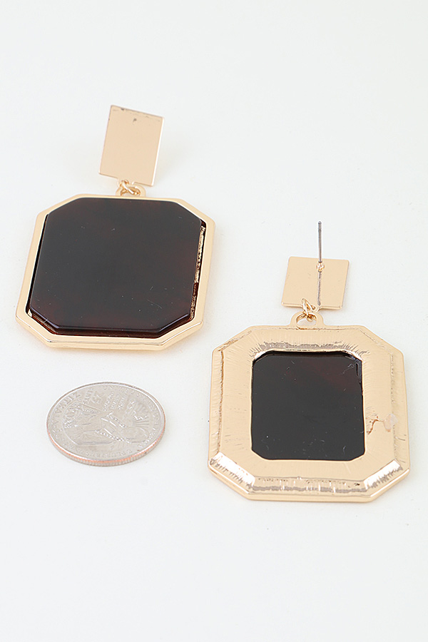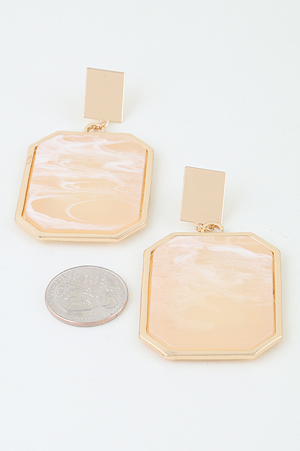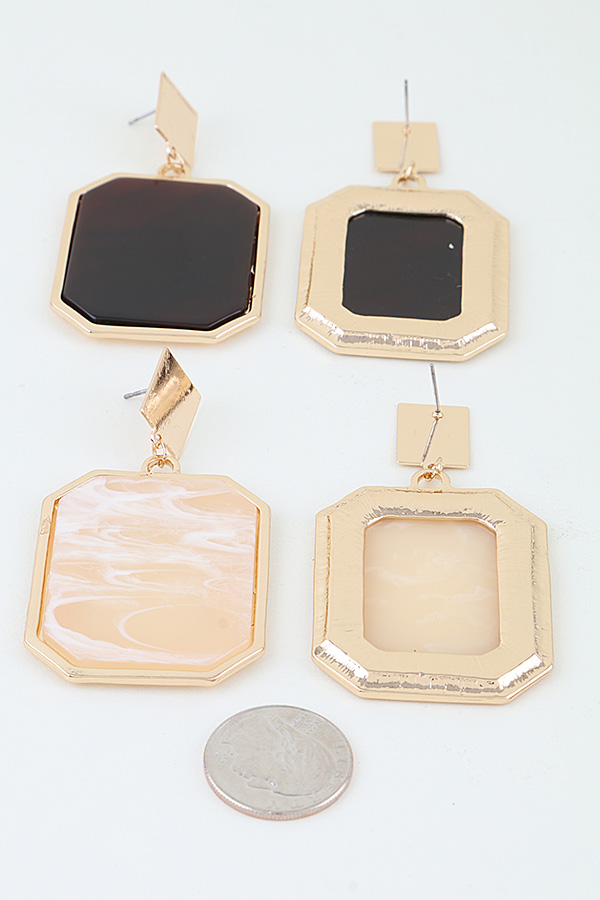 - * These Modern Diamond Cut Frame Earrings from H&D Accessories feature bold, geometric pendants with a marbled, glossy finish, anchored by a sleek square post. Their structured design adds a contemporary, statement-making touch to any ensemble. Wear them to elevate a tailored blazer for a professional office look or to complement a minimalist dress at a cocktail event. The lightweight construction ensures comfortable all-day wear, making them a versatile choice for both formal and casual occasions.