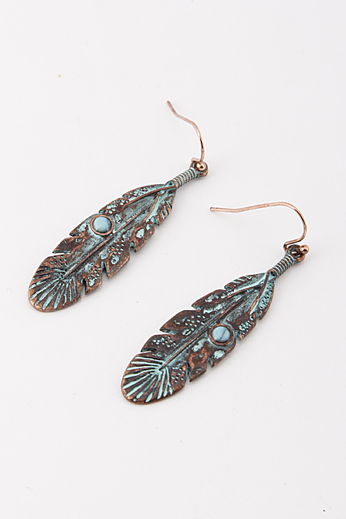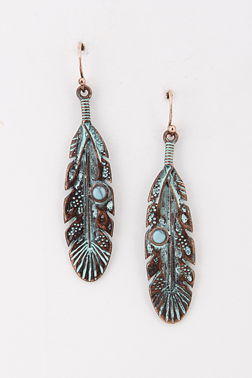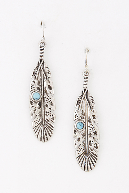 - * Aztec Feather Earrings with Turquoise Faux Stone Detail 5JCF8