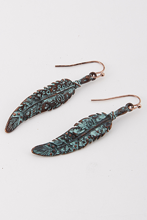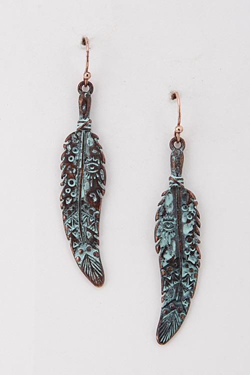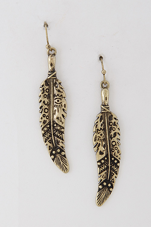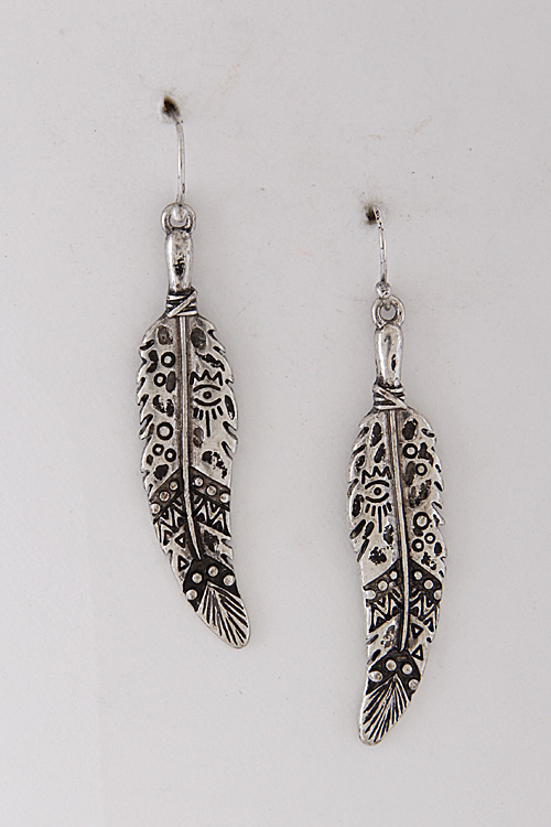 - * Aztec Style Feather Earrings 5JCF8 * 2.2" approx.