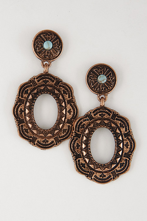 - * Circle Antique Intricate Shaped Drop Earrings 6FBF3 * 1.2 x 2" approx.