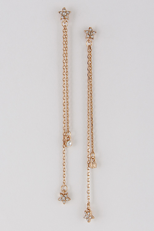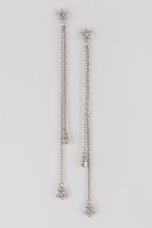- * Chain Fashionable Earrings with Small Rhinestone Stars 7FBE2