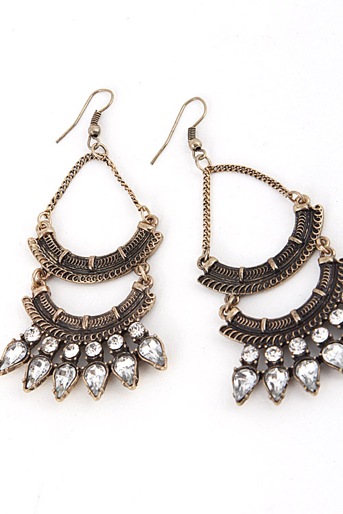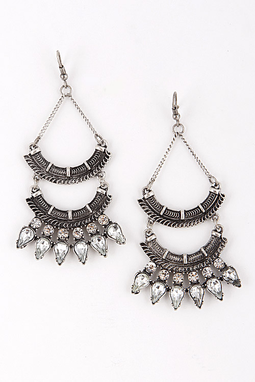 - *Tired Dangle Earrings with Teardrop Rhinestone Detail 5ICI1 * 6" approx.