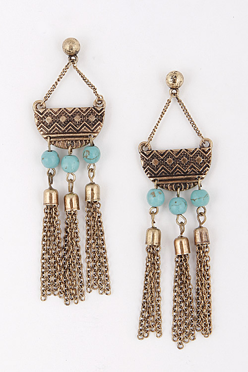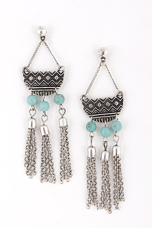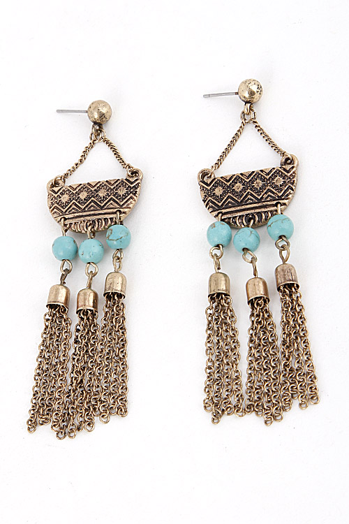 - * Aztec Half Circle Dangle Earrings with Bead and Tassel Detail 5ICI1 * 9" approx.