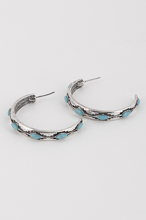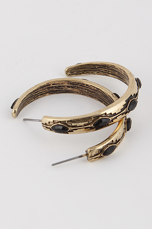 - * Aztec Hoop Earrings 6ACJ10 * 1.5 X 1.2" approx.