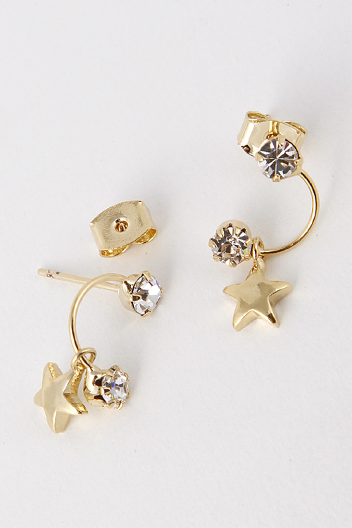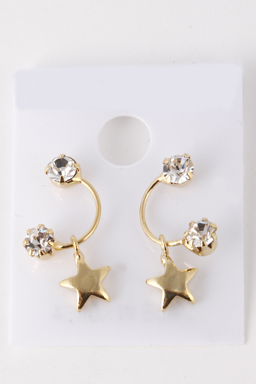 - * Star Cutout Curved End Rhinestone Stud Earring 5EBB4 * .25 x .75" approx.