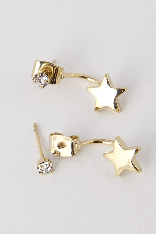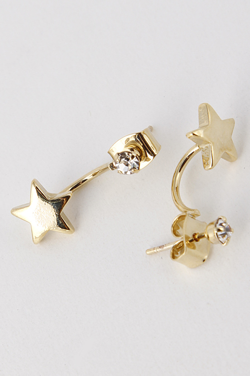 - * Star Cutout Curved End Rhinestone Stud Earring 5EBB4