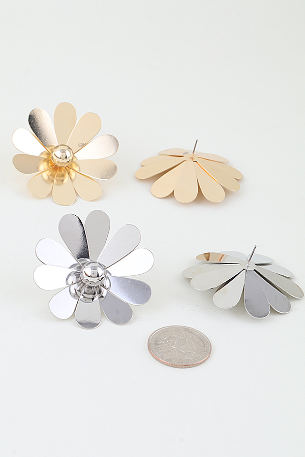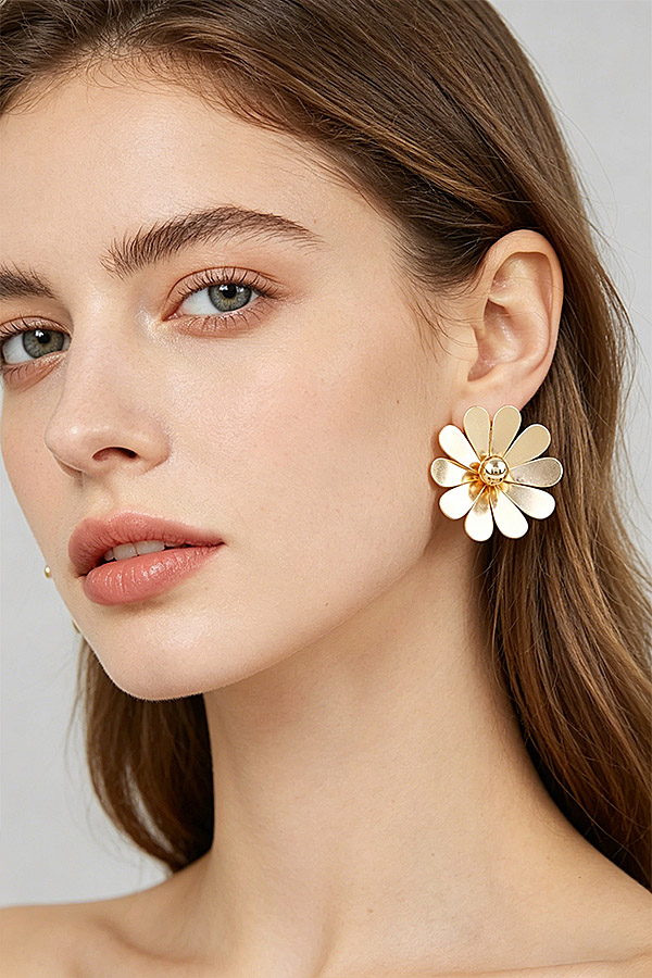 - * Polished Daisy Flower Stud Earrings from H&D Accessories feature a charming daisy-inspired design with multiple sleek, polished metal petals radiating outward from a smooth, rounded central accent, crafted with a lightweight, dimensional structure that catches light beautifully for a subtle, luminous glow, perfect for adding a fresh, playful touch to everyday outfits and casual gatherings alike.