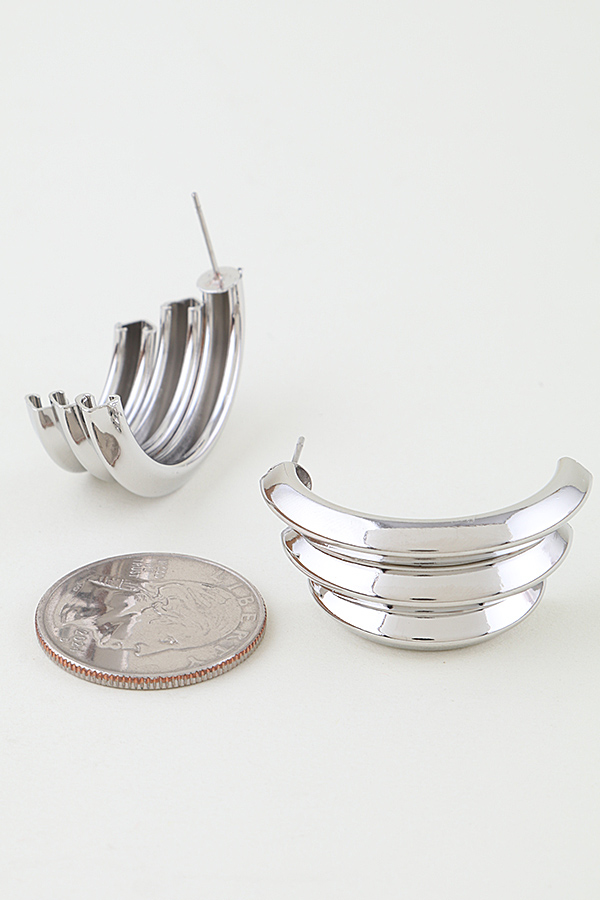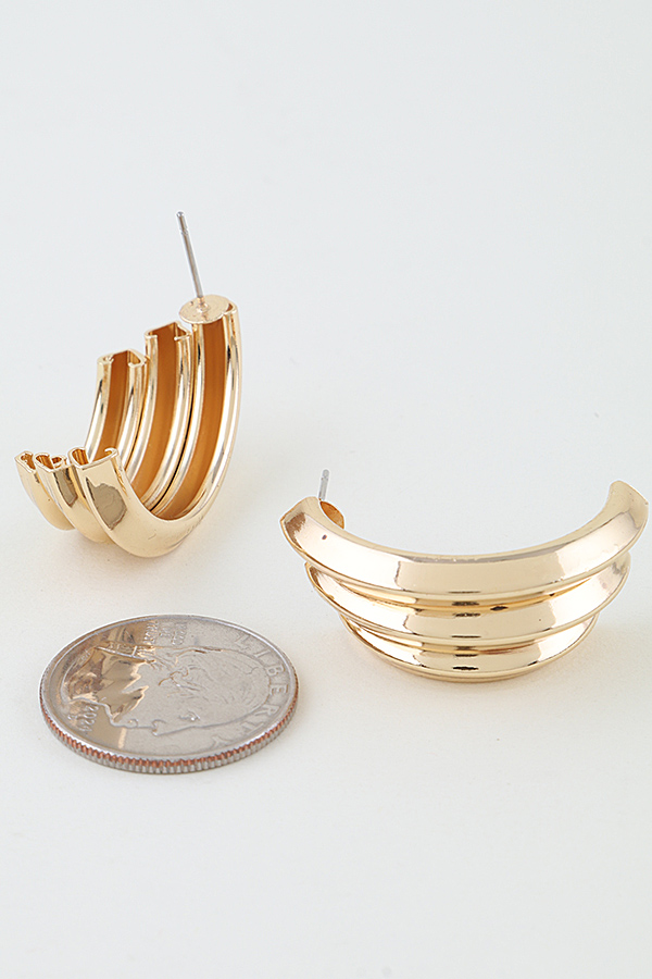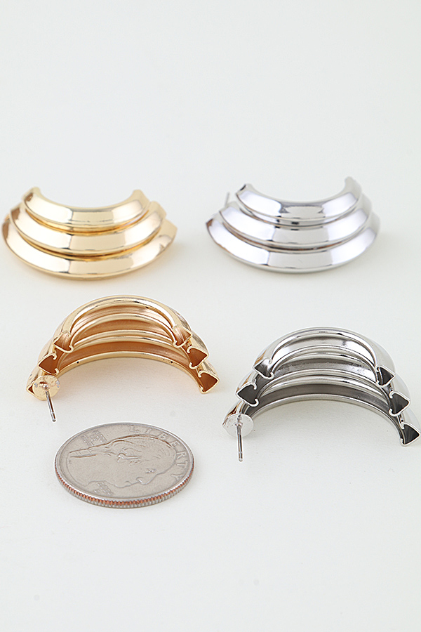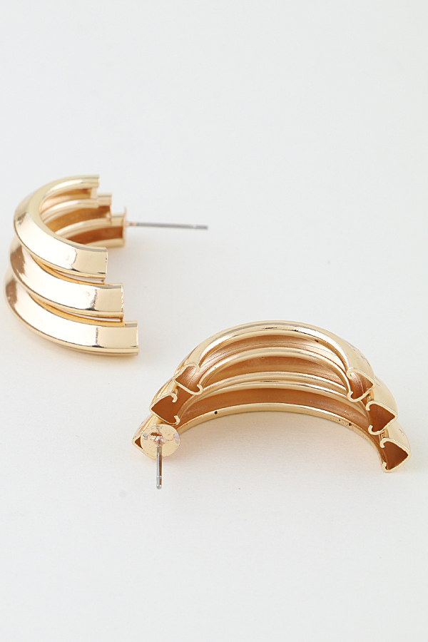 - * The Triple Heart Arch Hoop Earrings from H&D Accessories feature a bold layered design of polished curved arches that create a subtle heart-inspired silhouette, offering a modern, sculptural look. They pair seamlessly with a sleek blazer for a chic office ensemble or a cropped top for a night out, adding an edgy yet refined touch to both casual and dressy outfits.