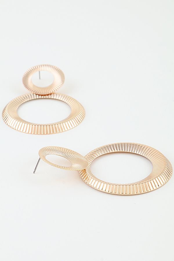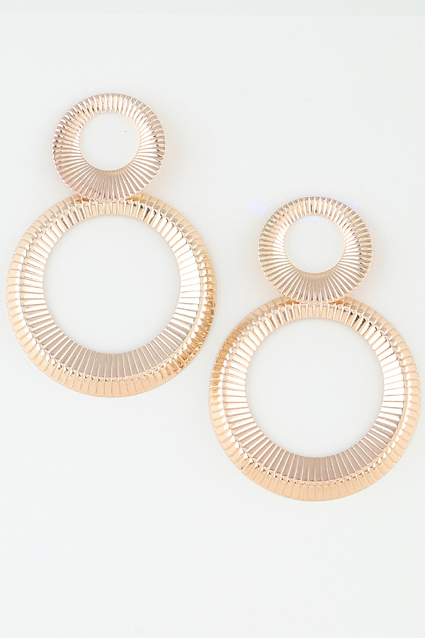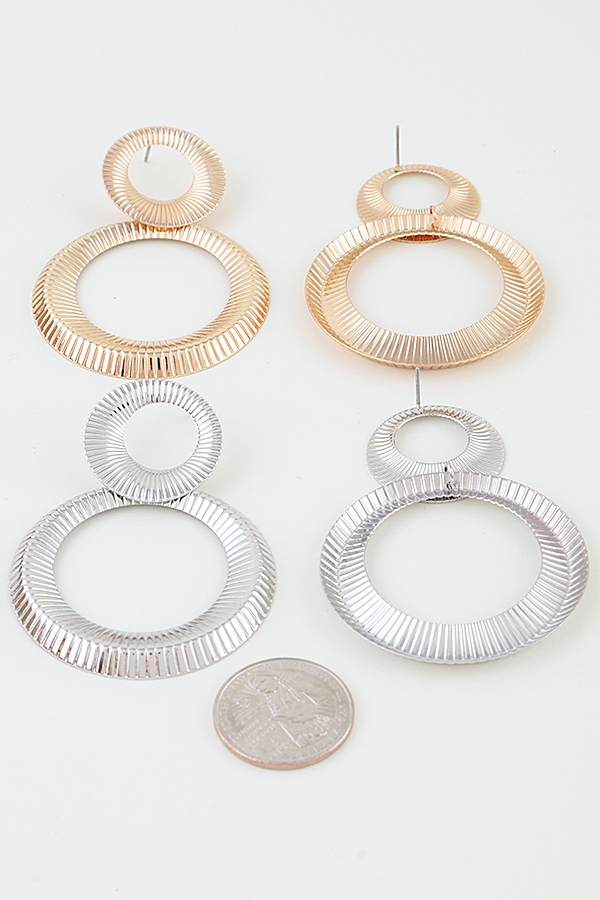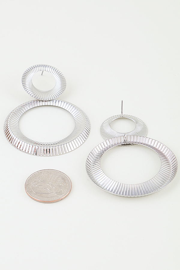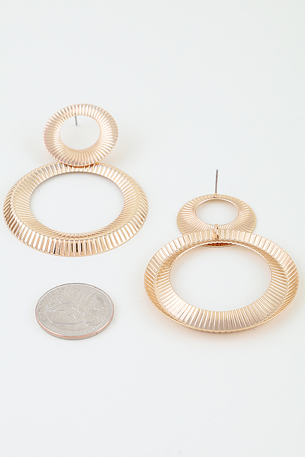 - * These drop earrings from H&D Accessories feature a double open-disc design, with a smaller ribbed ring stacked above a larger one. The fine radial ribbing creates a textured, dimensional appearance that catches light beautifully. The lightweight, open structure delivers a bold, modern silhouette, making them a standout accessory.