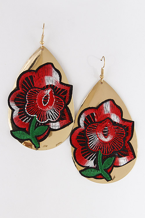 - * Flat Metallic Earrings With Charming Rose 7ECC3 * 2 X 3.8" approx.