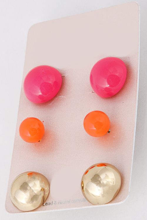 - * Two Tone Neon Color Stud Set Earring 5DAJ2 * .6 x .6/ .4 x .4/ .6 x .6" approx.