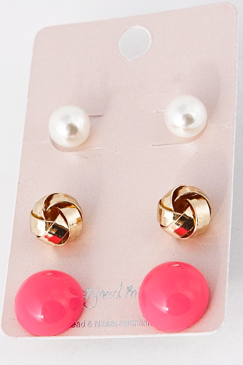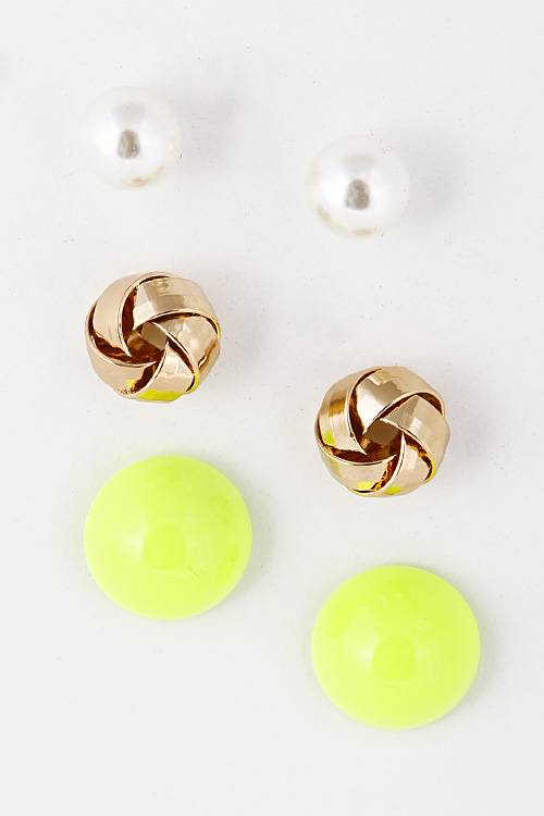 - * Neon Dome Pearl Stud Set Earring 5DAJ2 * .3 x .3/ .5 x .5/ .6 x .6" approx.