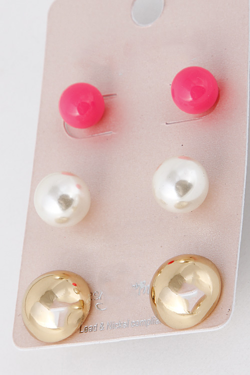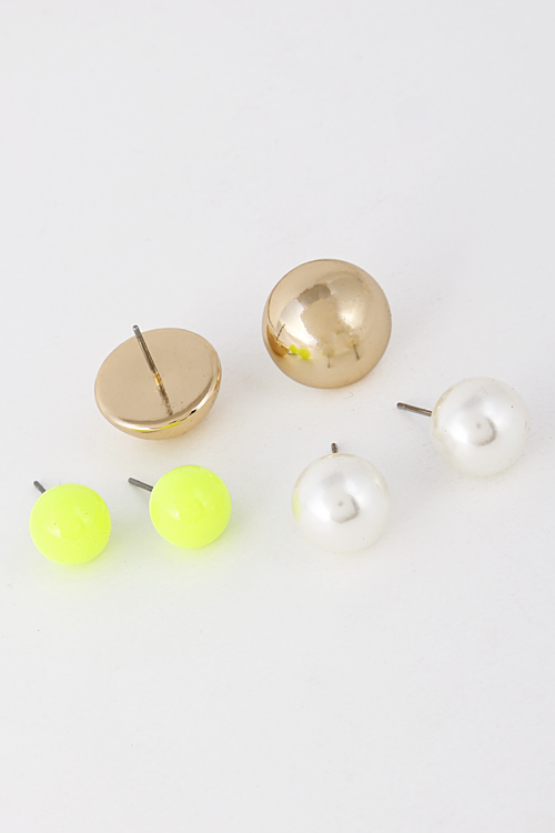 - * Neon Pearl Ball Stud Dome Set Earring 5DAJ2 * .3 x .3/ .4 x .4/ .6 x .6" approx.