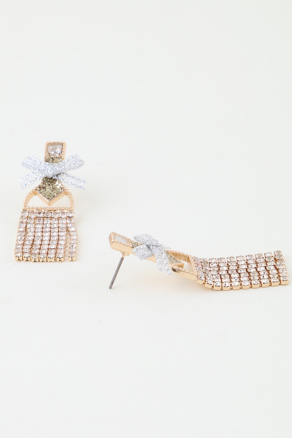 • * Bejeweled Ribbon Curtain Drop Earrings