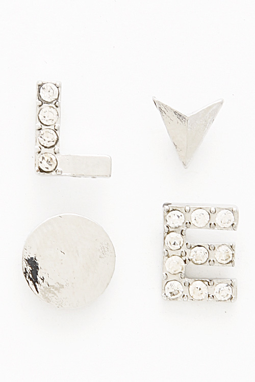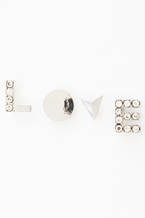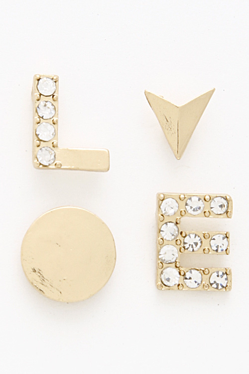 - * Love Spelling Shaped Four Stud Set Earring 5FCF2 * .25 x .4" approx.