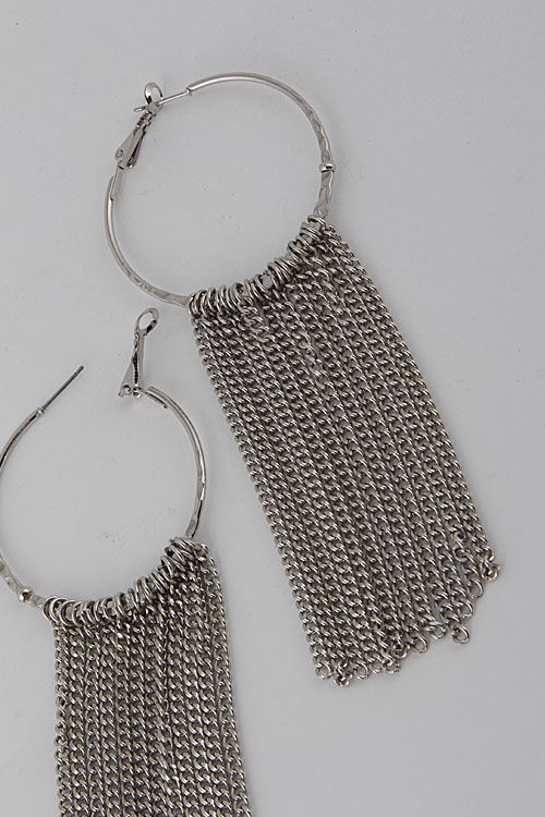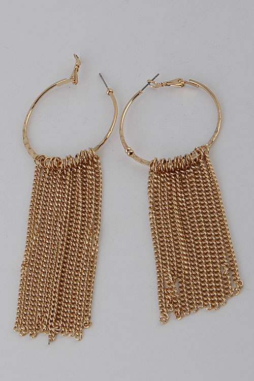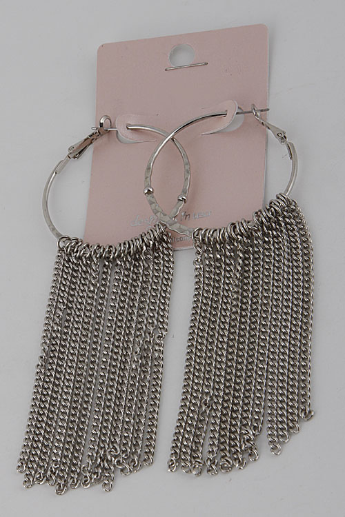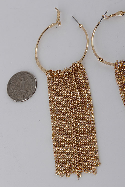 - *Round Hoop Fringe Chain Earrings 6ACC6 * 1.5 x 3" approx.
