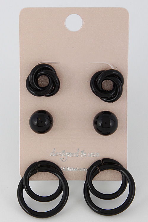 - * Multi 3 Set Shaped Unique Earrings 6DAJ5 * 1 X 1" approx.