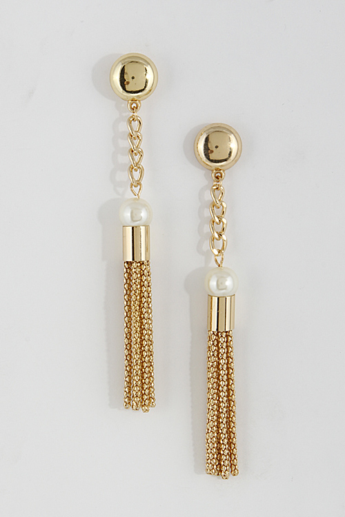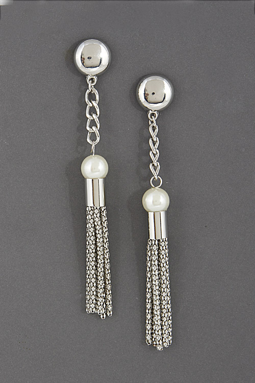 - * Long Earring With Small Tassel And Faux Pearl 6DAJ6 * 0.5 X 4" approx.
