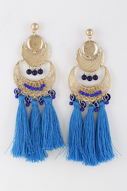 - * Show Your Tassel Antique Style Long Earrings 7DBC7 * 2 X 5.5" approx.