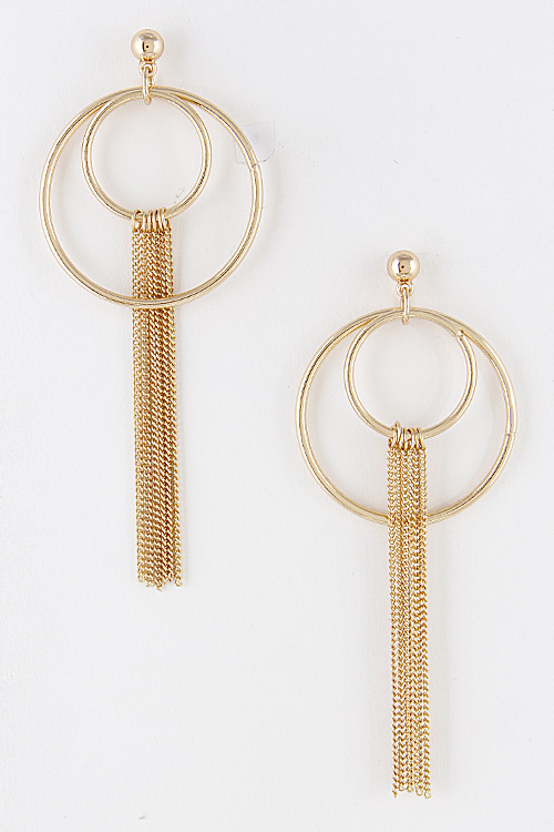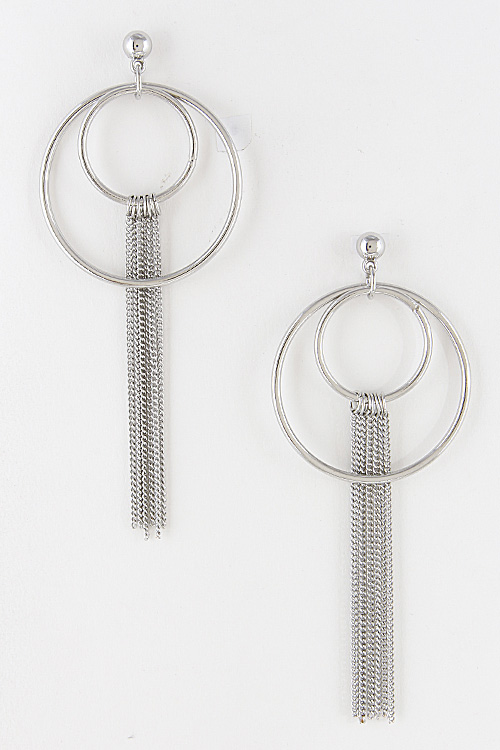 - * Two Linked Circle with Chain Details Earrings 7EAB1 * 1.6 x 4" Approx.