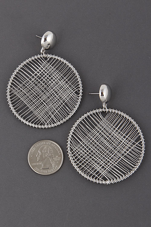 - * Fashion Racquet Inspired Round Earrings 7DBC8 * 2.1 X 2.8" approx.