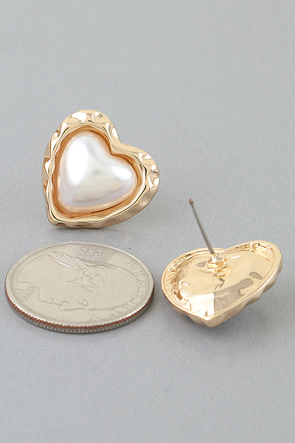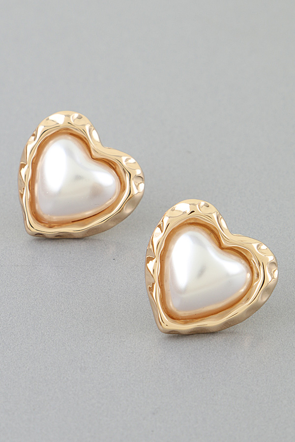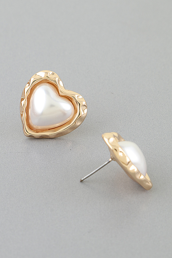 • * Hammered Pearl Stone Heart Stud Earrings