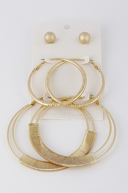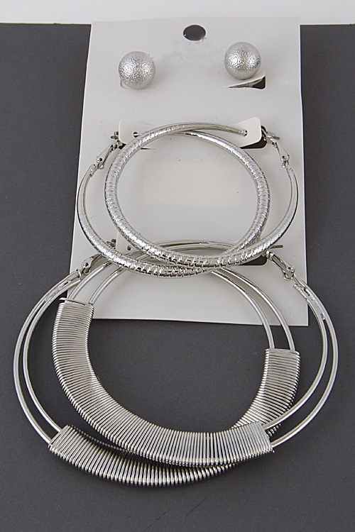 - * Shiny Hoop And Stud Earrings Set 6GAF5
