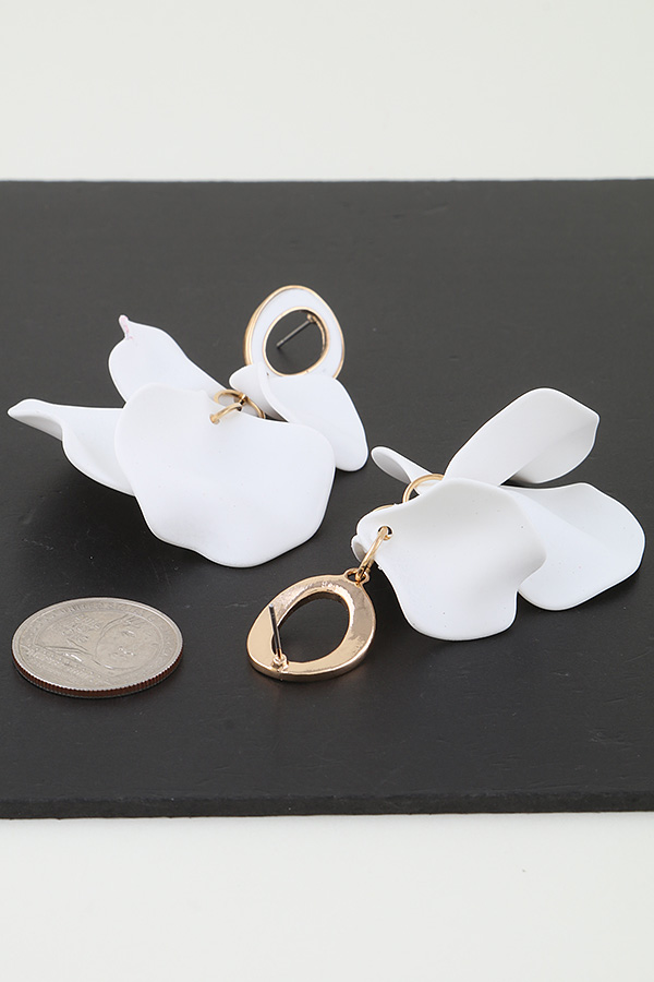 • * These Abstract Petal Drop Earrings from H&D Accessories are a captivating blend of modern artistry and elegance. The earrings feature an innovative design with irregular, petal - shaped elements that cascade down, creating a sense of movement and fluidity. Atop each petal arrangement is a sleek, circular hoop, adding a touch of geometric contrast. Crafted with meticulous attention to detail, these earrings are a statement piece that effortlessly combines contemporary style with a dash of sophistication.
