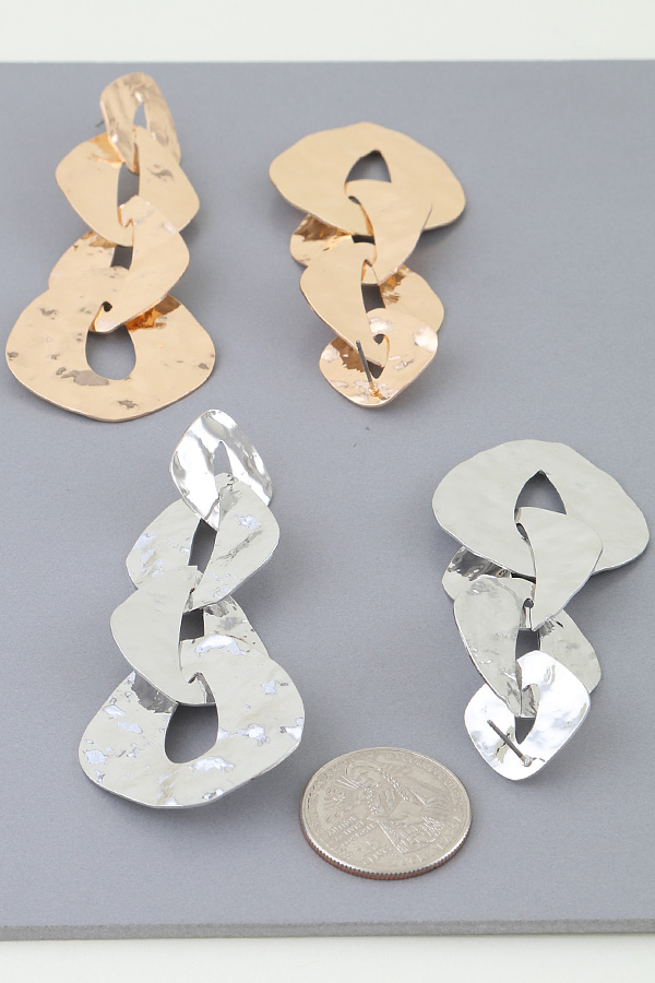 - * Hammered Abstract Link Chain Earrings
