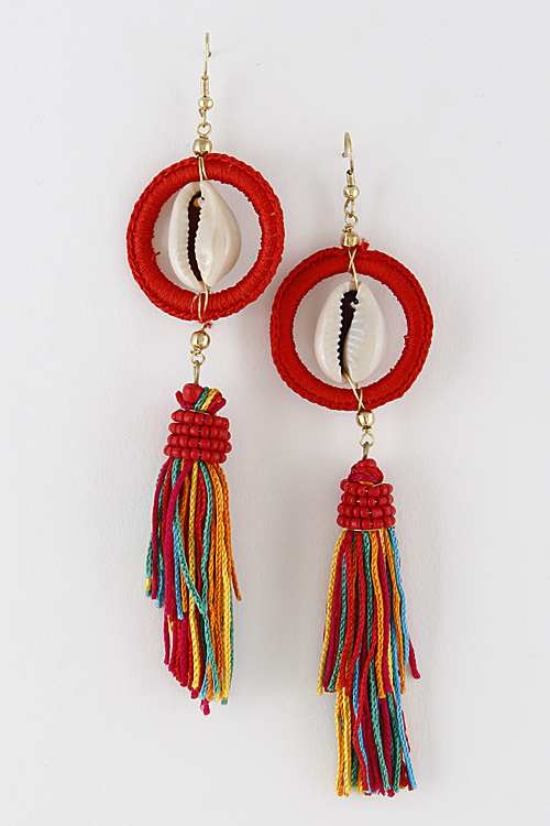 - * Sea Shell Cute Earrings with Tassel 7BBC3 * 1.2 x 5" approx.