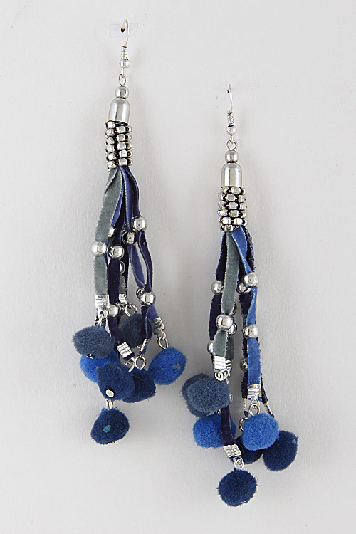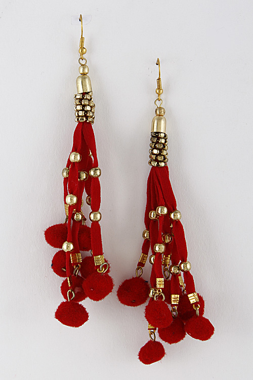 - * Pom Pom Charm Earrings 7DCI10 * 0.5 x 3" approx.