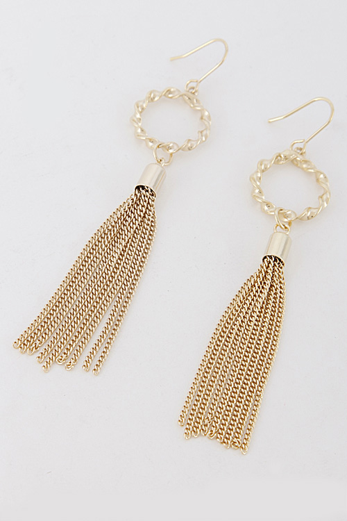 - * Twisted Circle Drop Tassel Chain Earrings 5KAD6 * 1 x 3" approx.