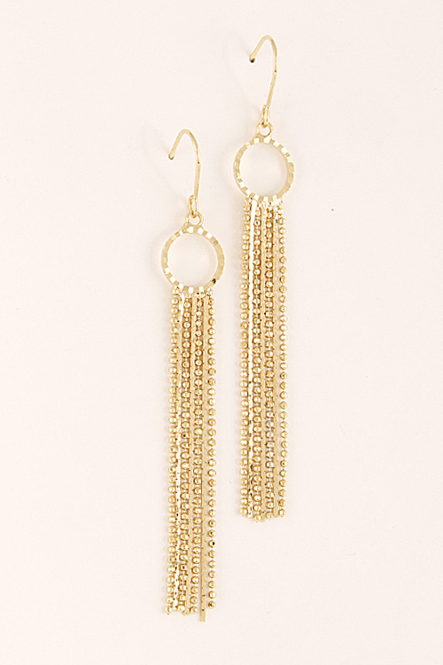 - * Circle Long Drop Rhinestone Earrings With Fringes 6CAD10 * 0.4 X 2.8" approx.