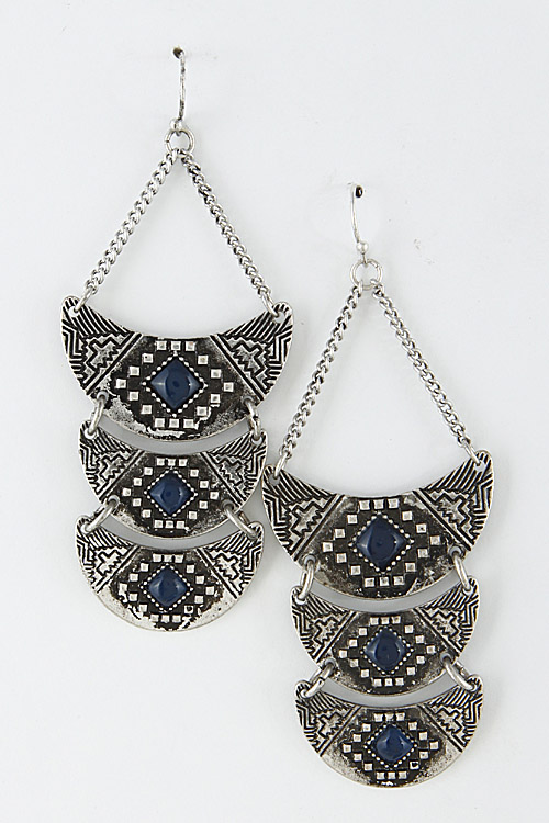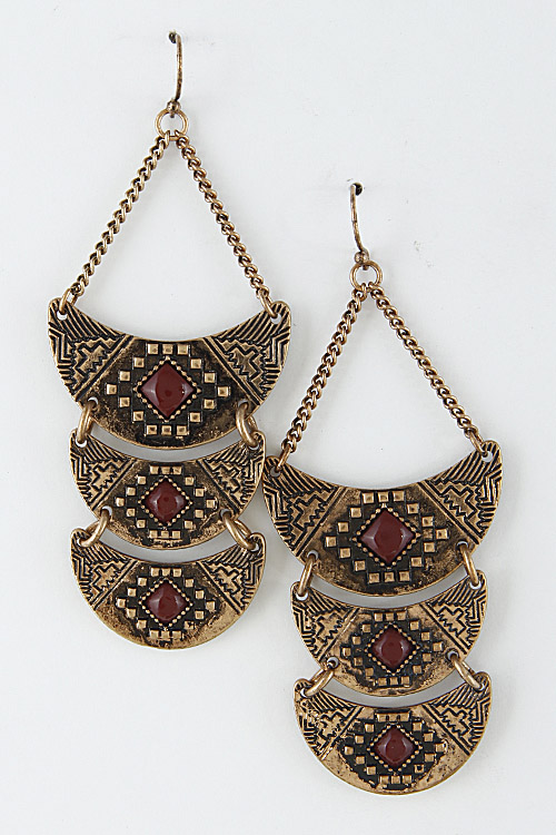 - * Aztec Style Earrings 6HAF6 * 1.2 x 3.2" approx.