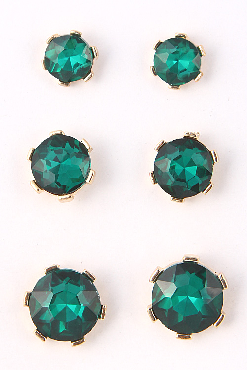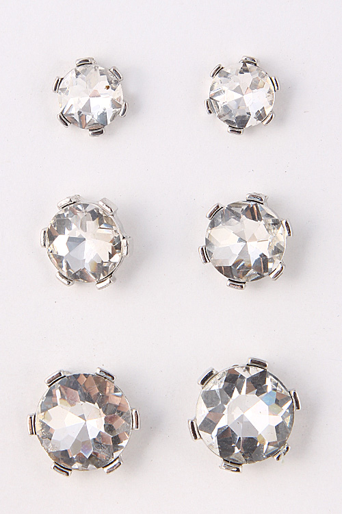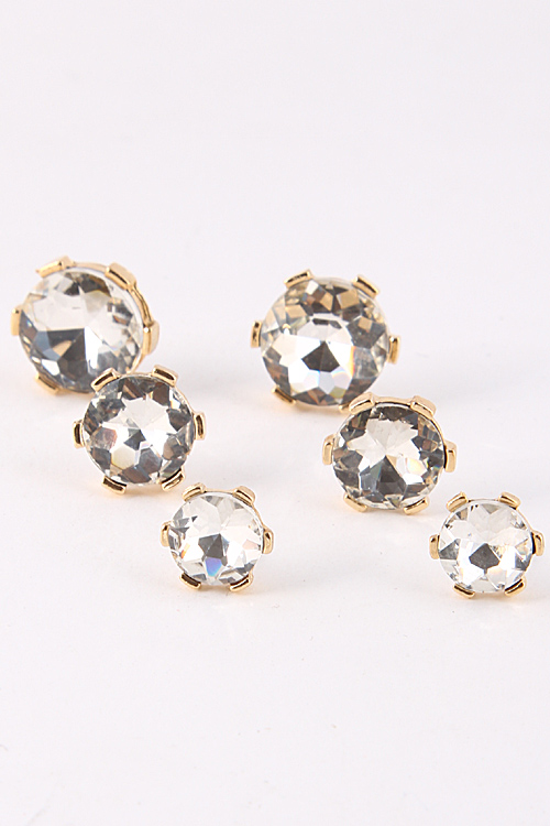 - * Enlarged Circle Rhinestone Stud Set Earring 5ACB1 * .2 x .3 x .5" approx.