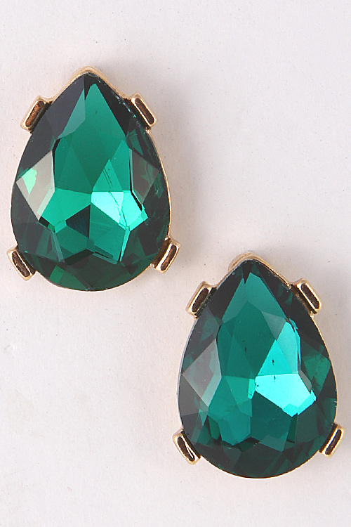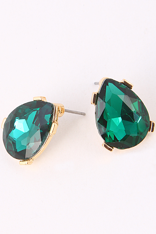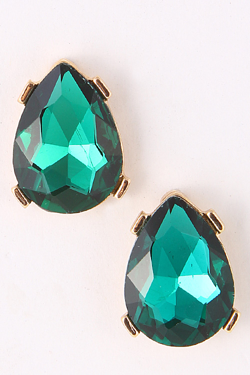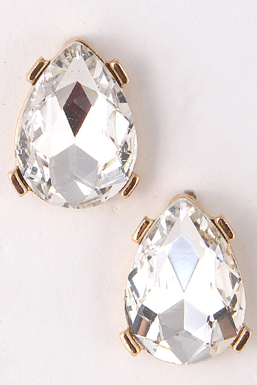 - * Teardrop Rhinestone Golden Rim Stud Earring 5ACA6 * .5 x .75" approx.