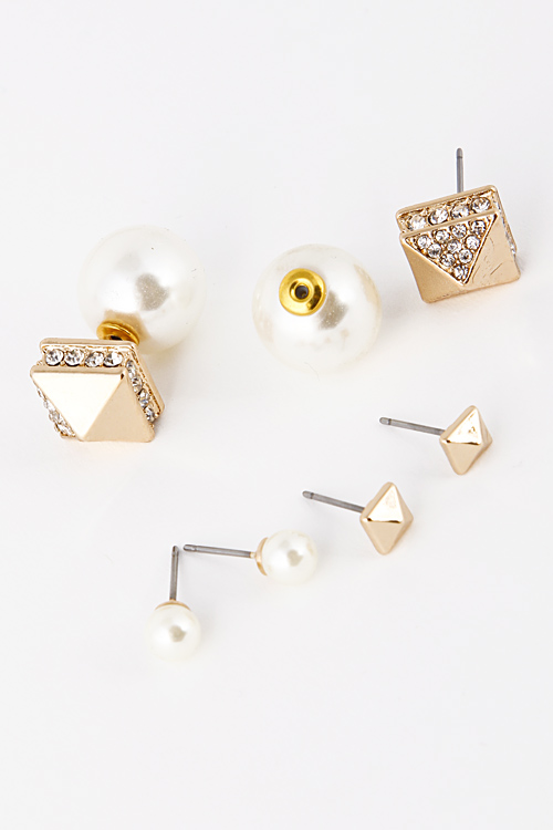 - * Three Dimensional Pyramid Pearl Set Stud Earring 5ECJ14 * .2 x .2/ .2 x .2/ .4 x.5" approx.