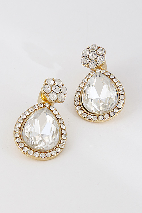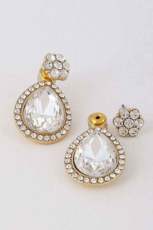 - * Simple Tear Drop Rhinestone Earrings With Flower 6EAF8 * 0.8 x 1.2" approx.