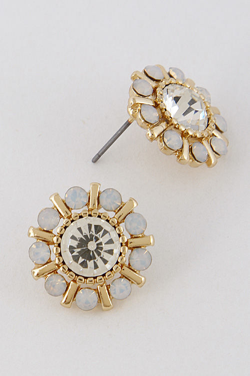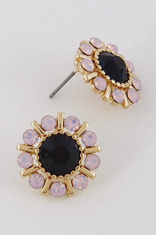 - * Flower Earrings with Bright Stones 7ABC2 * 0.8 X 0.8" approx.