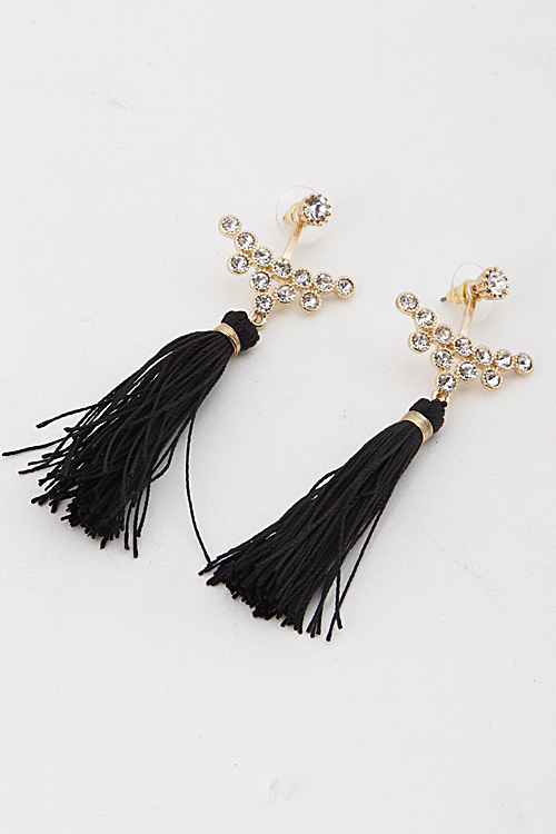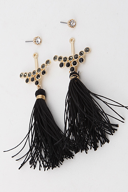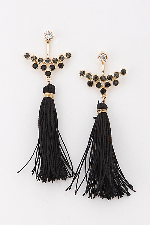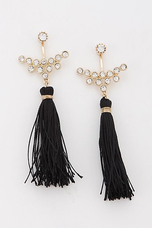 - * Ear Jacket Rhinestone earrings with Tassel Charm Detail 5JCE10 * 1X3" approx.