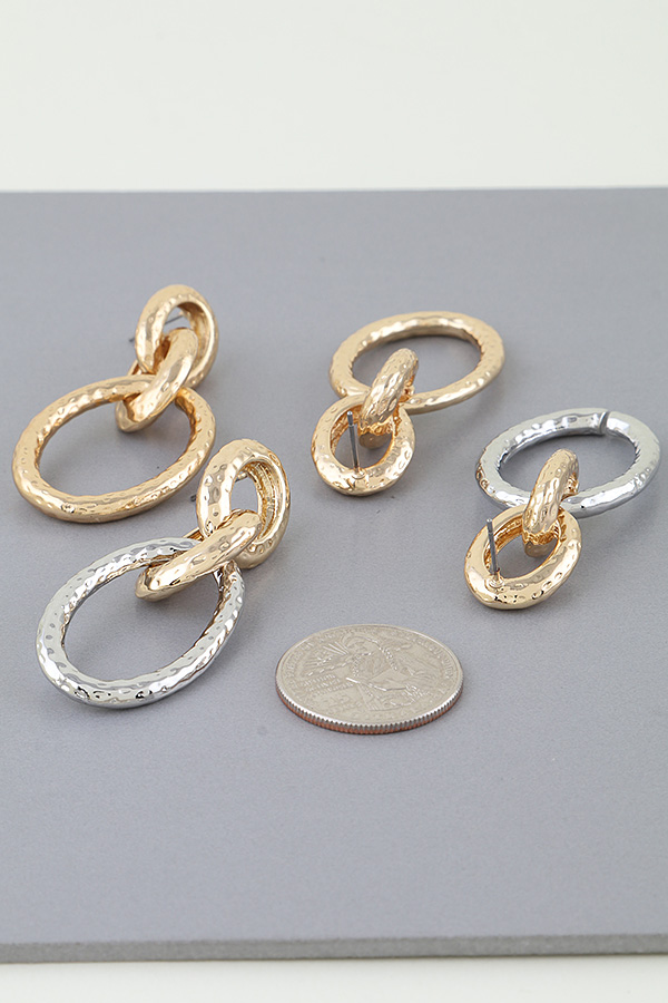 - * These are Hammered Link Chain Drop Earrings from H&D Accessories. They feature a design with linked chains that have a hammered texture, giving them a unique and textured appearance. When you're heading to a casual weekend brunch with friends or attending a small, stylish get - together, wearing these earrings can add a touch of trendy elegance to your outfit, making you stand out with a fashionable and chic look.