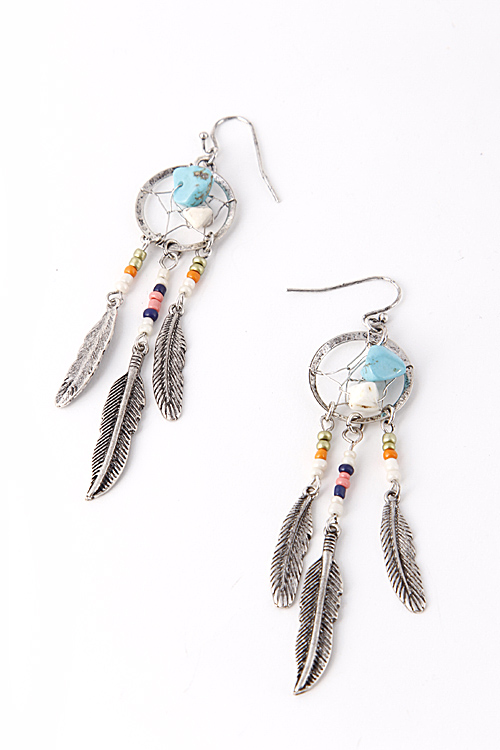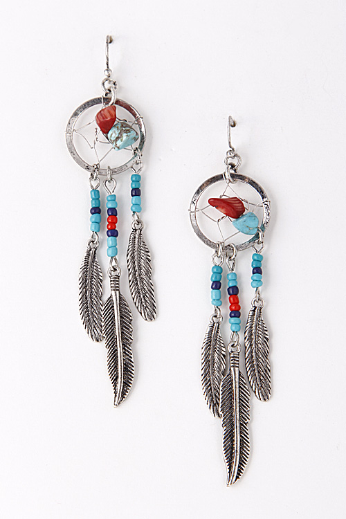 - * Dream Catcher Leaf Attached Long Earring 5EBJ2 * 1 x 3.75" approx.