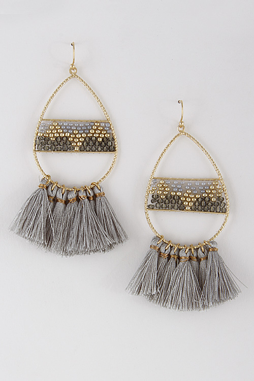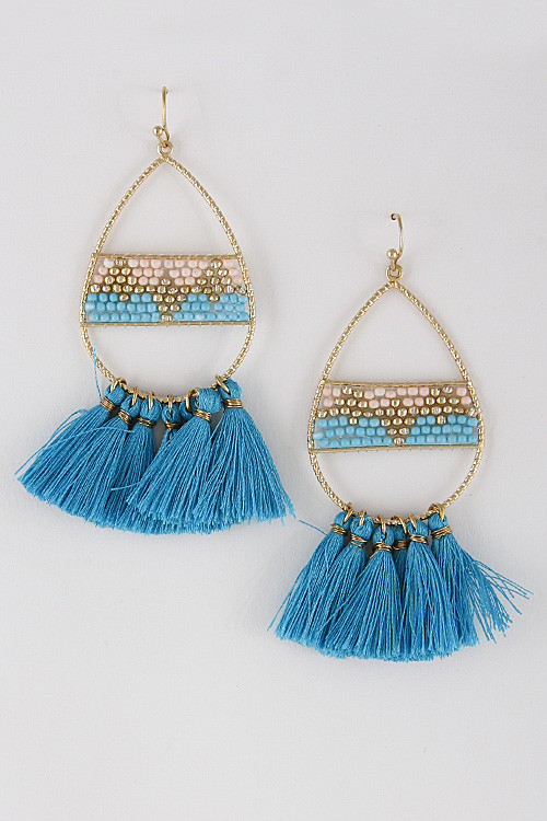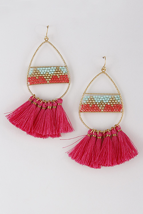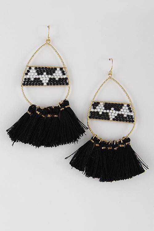 - * Tribal Beaded Earrings With Tassel 7EDA7 * 1.4 x 3.2" approx.