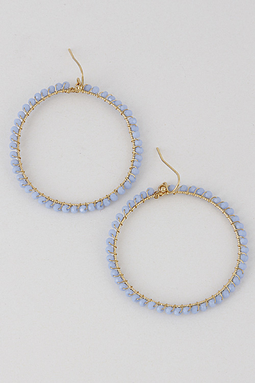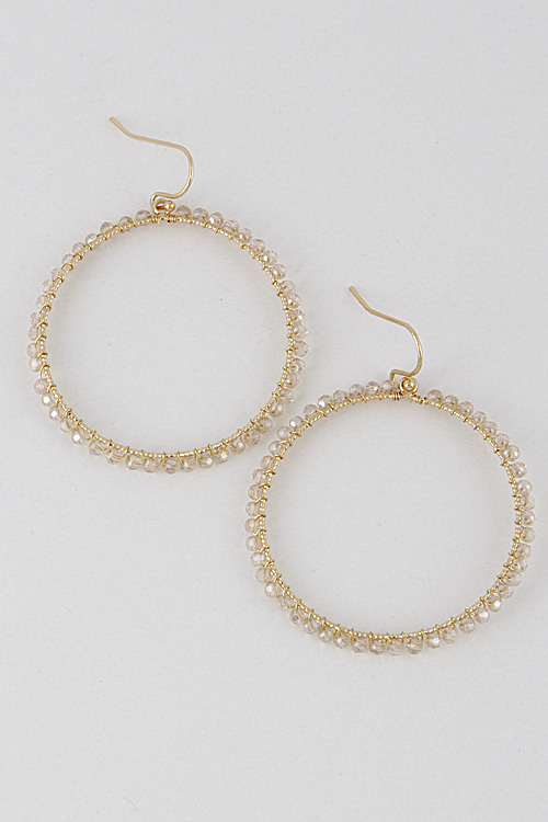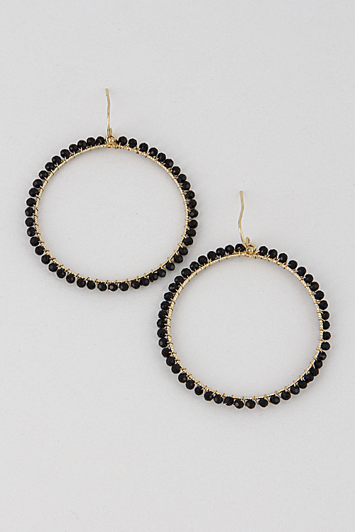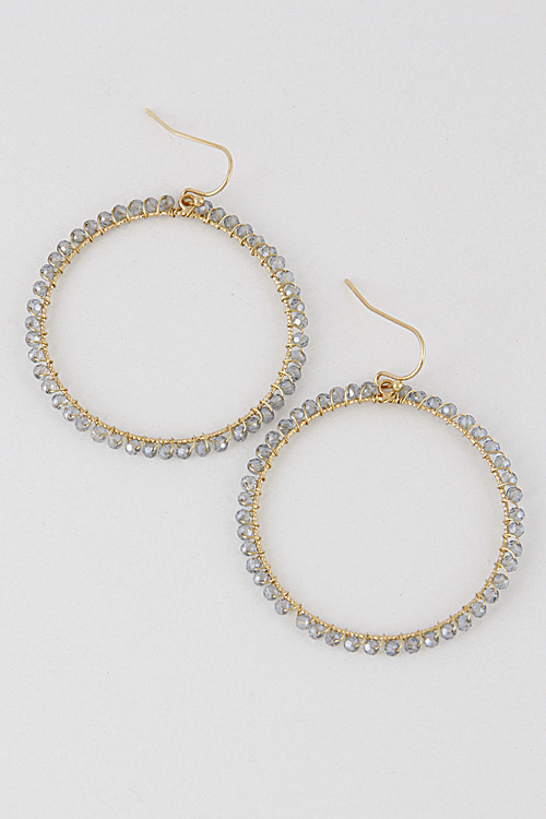 - * Cute Thin Round Earrings with Beaded Stones 7BBA4 * 1.8 X 2.2" approx.