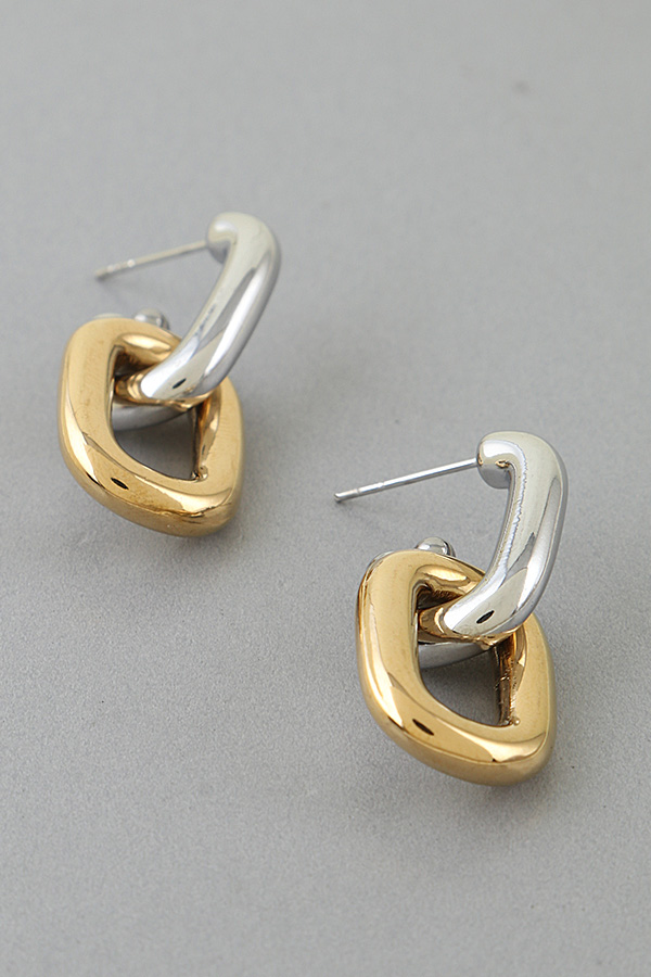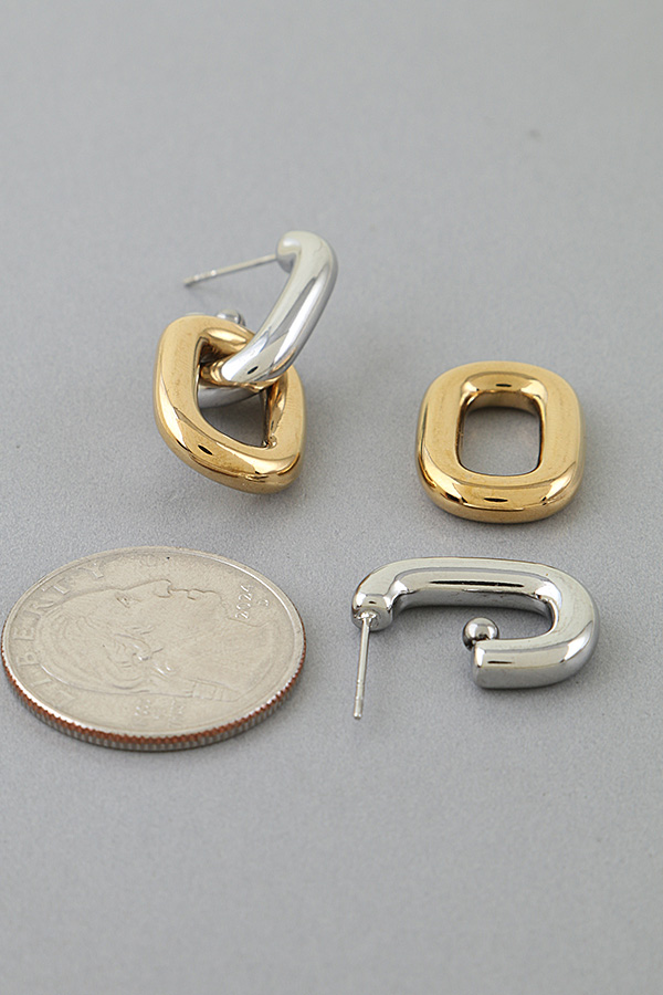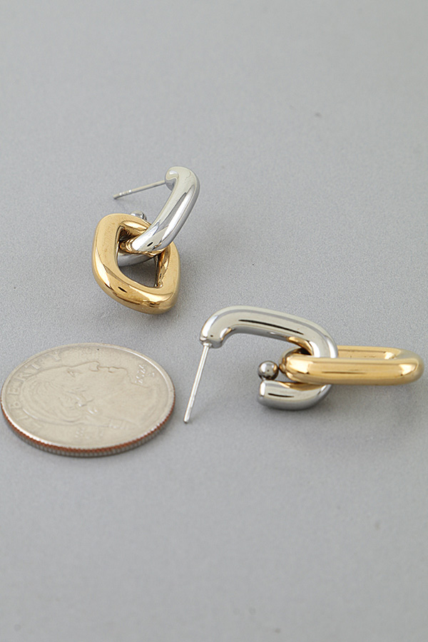 - * Two Toned Link Chain Drop Earrings