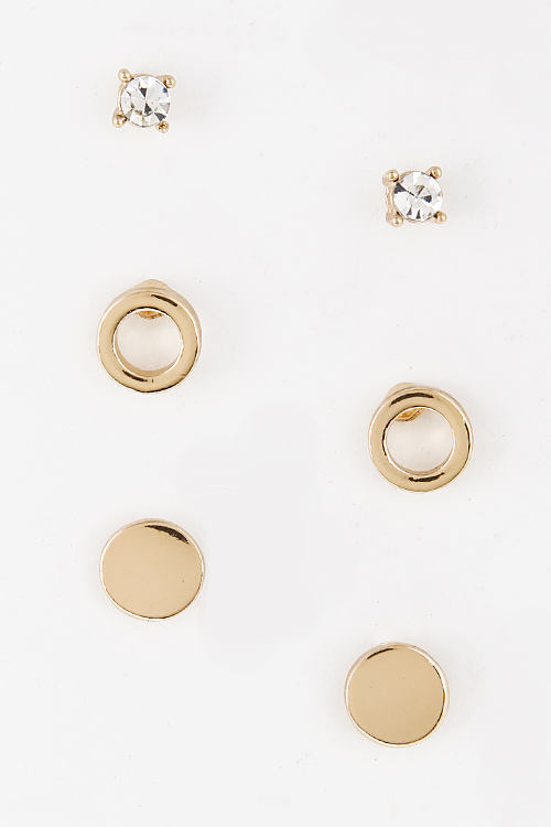 - * Circle Cutout Rhinestone Stud Set Earring 5CBA4 * .3 x .3 x .15" approx.